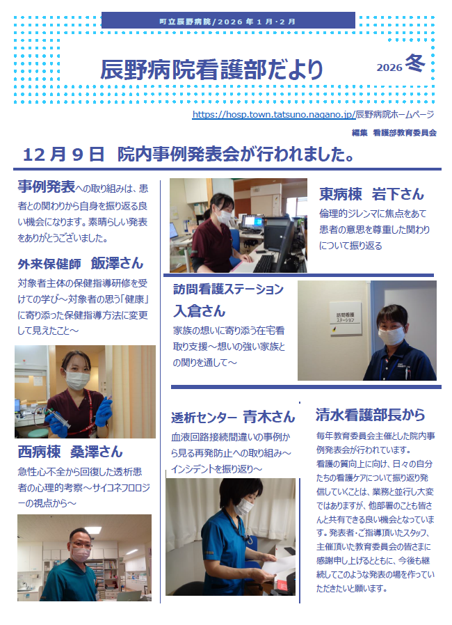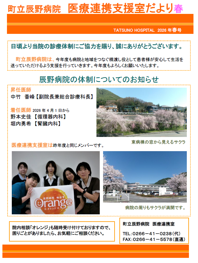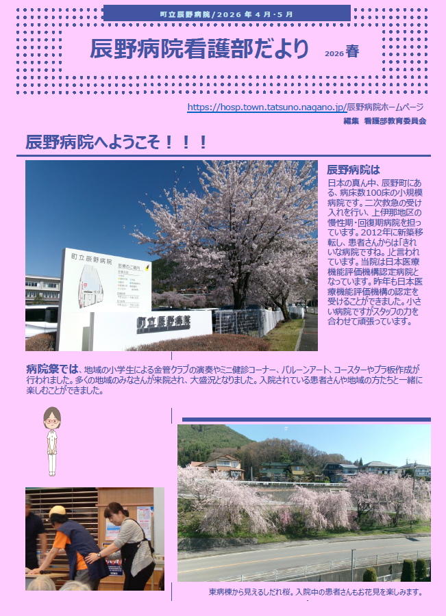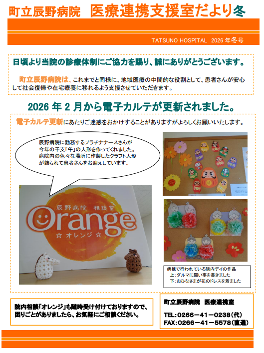 | 医療連携支援室だより | 辰野病院看護部だより |